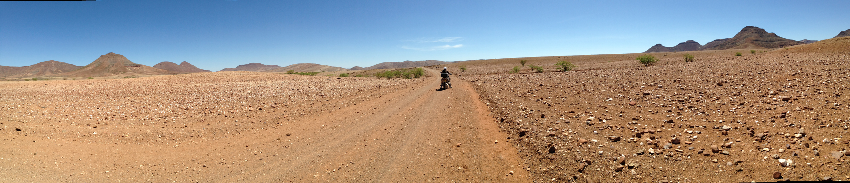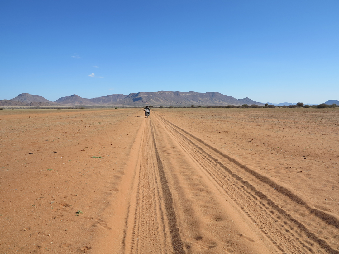 Namibia was as I had romantically imagined the whole of Africa to be but which it is not. Vast, hot, mysteriously uninhabited and breathtakingly beautiful. We rode Rocky Mountain passes which I honestly would not have attempted had I had the slightest notion they were approaching. We rode for whole days without seeing another human being, let alone a vehicle. We drove across desert plains of 100’s of square kilometres without seeing a single manmade object. Not a telegraph pole, not a fence line, not a mud hut, nothing but vast open space with the occasional mountain range rising in the distance.