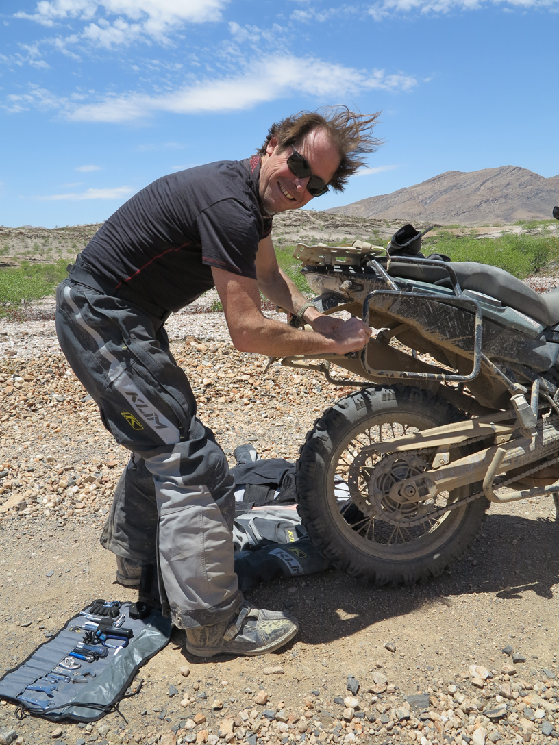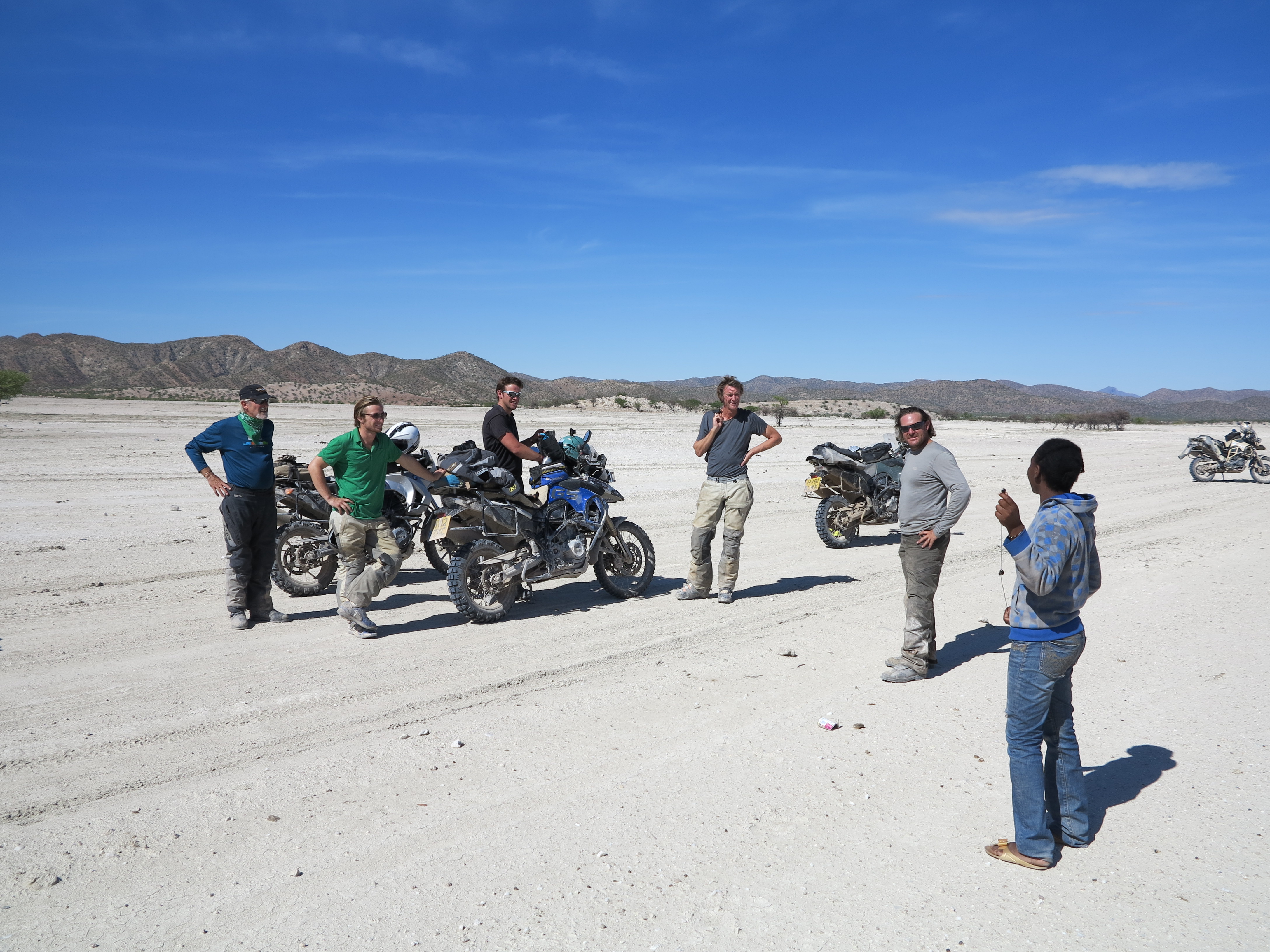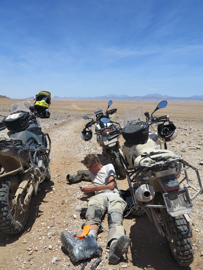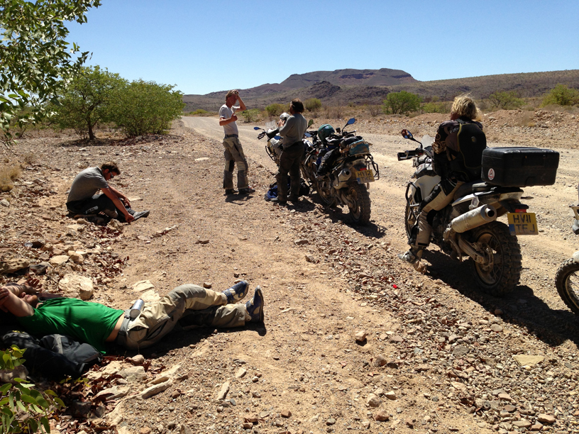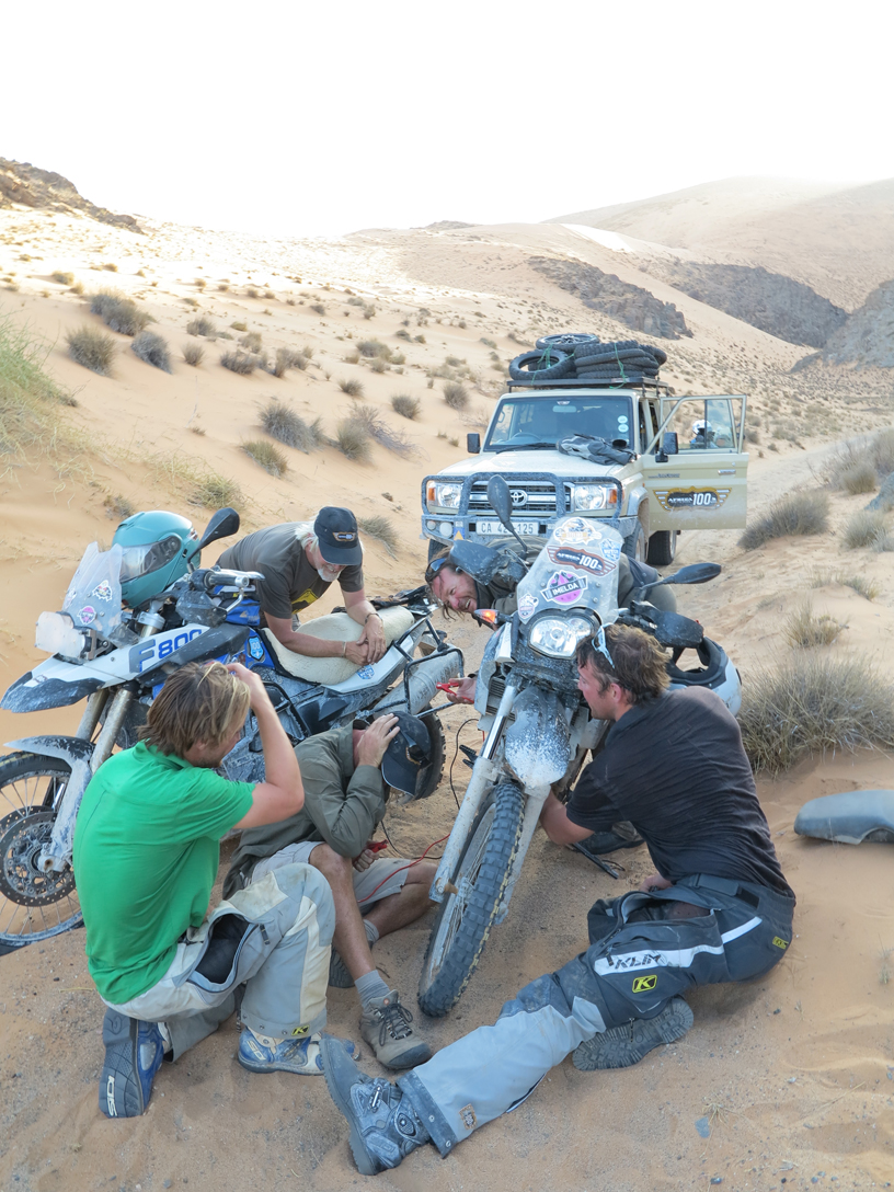 I caught up with the team in central Namibia in early December and was a little jealous to see how dirty and hard worn the riders gear had become. If I was to fit into this tough looking rabble I would first have to scuff up my brand new gear a little, so I set about rolling around in the dirt. Had I known how many times I was to fall off over the next two weeks, I would not have worried!
