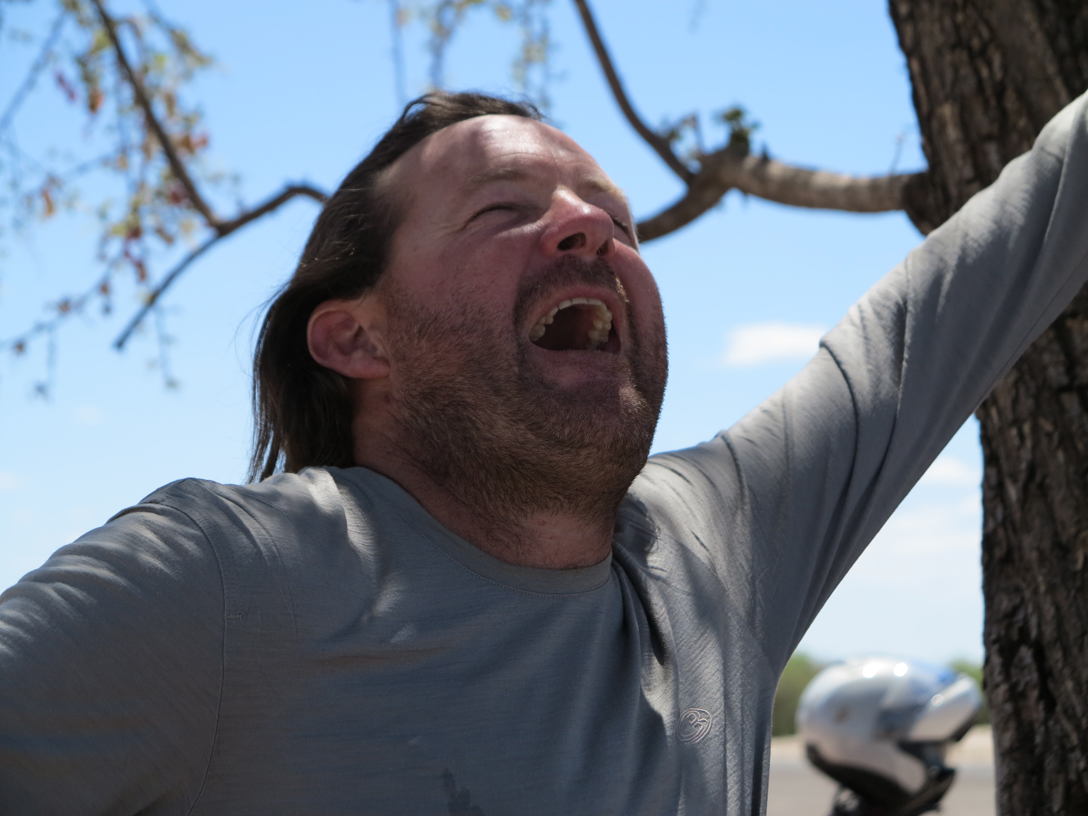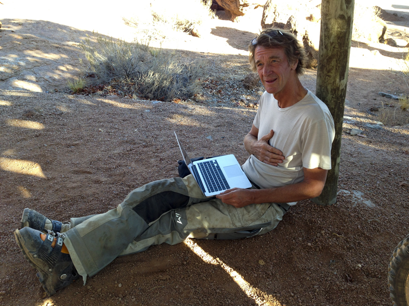 Gregg struggling with a deceptively ‘flat’ peace of desert!!