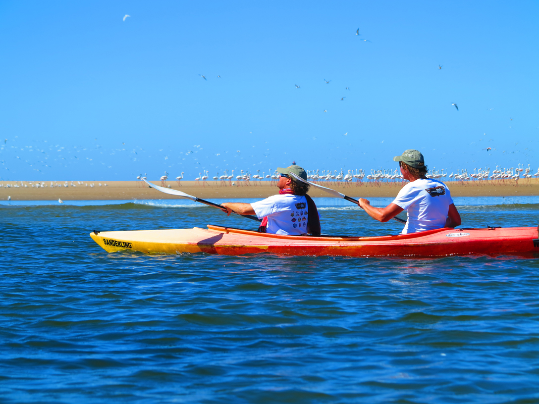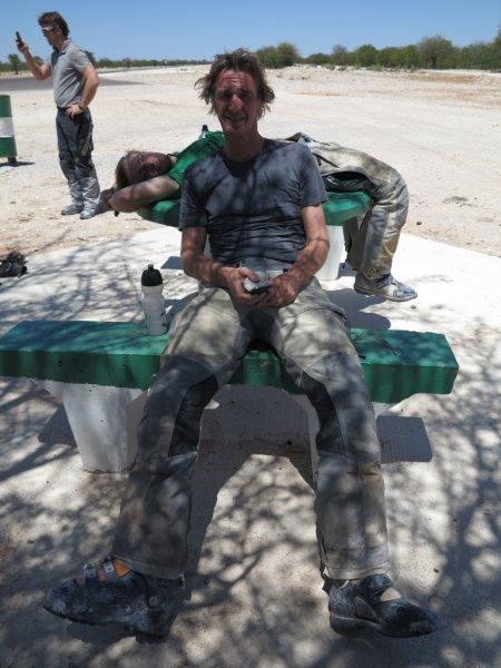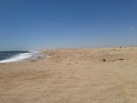 Having turned South West and after days of riding through deserts on white dusty roads, and a mercifully brief encounter with a Rhino family, we arrived at the Atlantic coast.