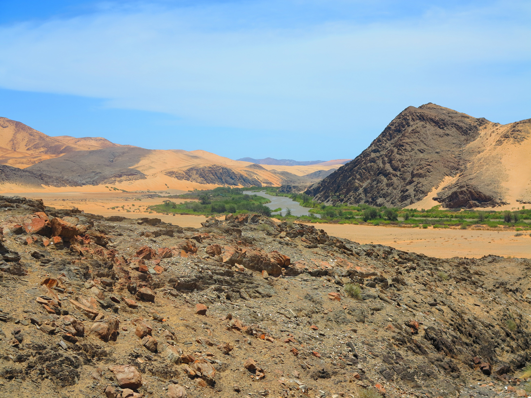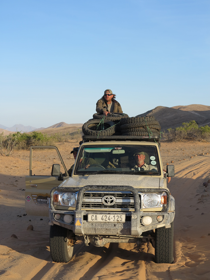 As the readers of Jim’s daily blog (and the statistics show there are hundreds of you) will have noted, every day in Africa is eventful, but our arrival in the sand dune camp of Serra Cafema was an afternoon to remember.